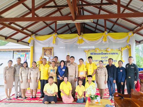 นายธรรมศักดิ์ อุไรเรืองเดช นายอำเภอปะคำ พร้อมด้วย นางจันทร์ทิมา อุไรเรืองเดช นายกกิ่งกาชาดอำเภอปะคำ ข้าราชการ กำนัน ผู้ใหญ่บ้าน และประชาชนในพื้นที่ เข้าร่วมพิธีมอบโคพระราชทาน พระบาทสมเด็จพระเจ้าอยู่หัว พระราชทานปล่อยชีวิตโค จำนวน ๑ คู่ เป็นโคเพศผู้ ๑ ตัว เพศเมีย ๑ ตัว และทรงมีพระราชประสงค์ พระราชทานโคดังกล่าว นำมาให้ความช่วยเหลือแก่เกษตรกร ราย นางสาววันวิสา ทวีพูน ในพื้นที่บ้านโคกสมบูรณ์ หมู่ที่ 4 ตำบลไทยเจริญ อำเภอปะคำ จังหวัดบุรีรัมย์ ให้มีโคเป็นของตนเองเพื่อเพิ่มผลผลิตทางการเกษตร เป็นการช่วยให้เกษตรกรมีรายได้เพิ่มขึ้น เกิดความร่มเย็นผาสุกในการดำรงชีวิต ด้วยน้ำพระราชหฤทัยที่เปี่ยมล้นด้วยความห่วงใย ในความทุกข์ร้อนของปวงประชา และพระราชทานความช่วยเหลือเอื้ออาทรเสมอมา อีกทั้งพระราชทาน แนวทางการดำรงชีวิตแก่พสกนิกร ซึ่ง ก่อให้เกิดขวัญกำลังใจและสติปัญญา ในการก้าวผ่านพันทุกข์ภัย ต่าง ๆ พระมหากรุณาธิคุณอันหาที่สุดมิได้นี้